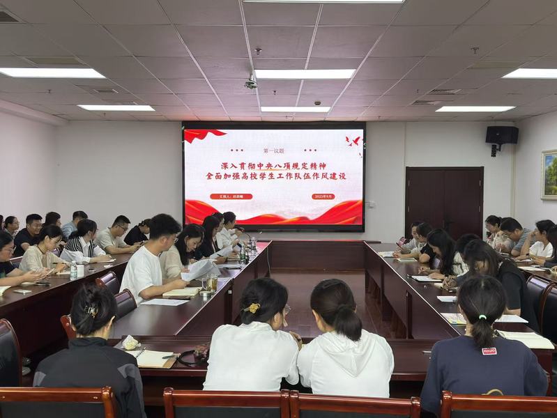 学生工作处党支部副书记姚梦领学“党风廉政与师德师风”主题内容,组织全体教职工深入学习《新时代高校教师职业行为十项准则》,并强调要深化师德师风综合治理,压实主体责任,引导全体教师以德立身、以德立学、以德施教、以德育人。随后,与会教师围绕典型案例展开沙龙讨论,交流心得体会,进一步增强纪律意识和规矩意识。辅导员赵晨曦在全体学生工作会议上作题为《深入贯彻中央八项规定精神 全面加强高校学生工作队伍作风建设》专题学习,旨在引导全体辅导员将中央八项规定精神全面融入学生工作各环节。